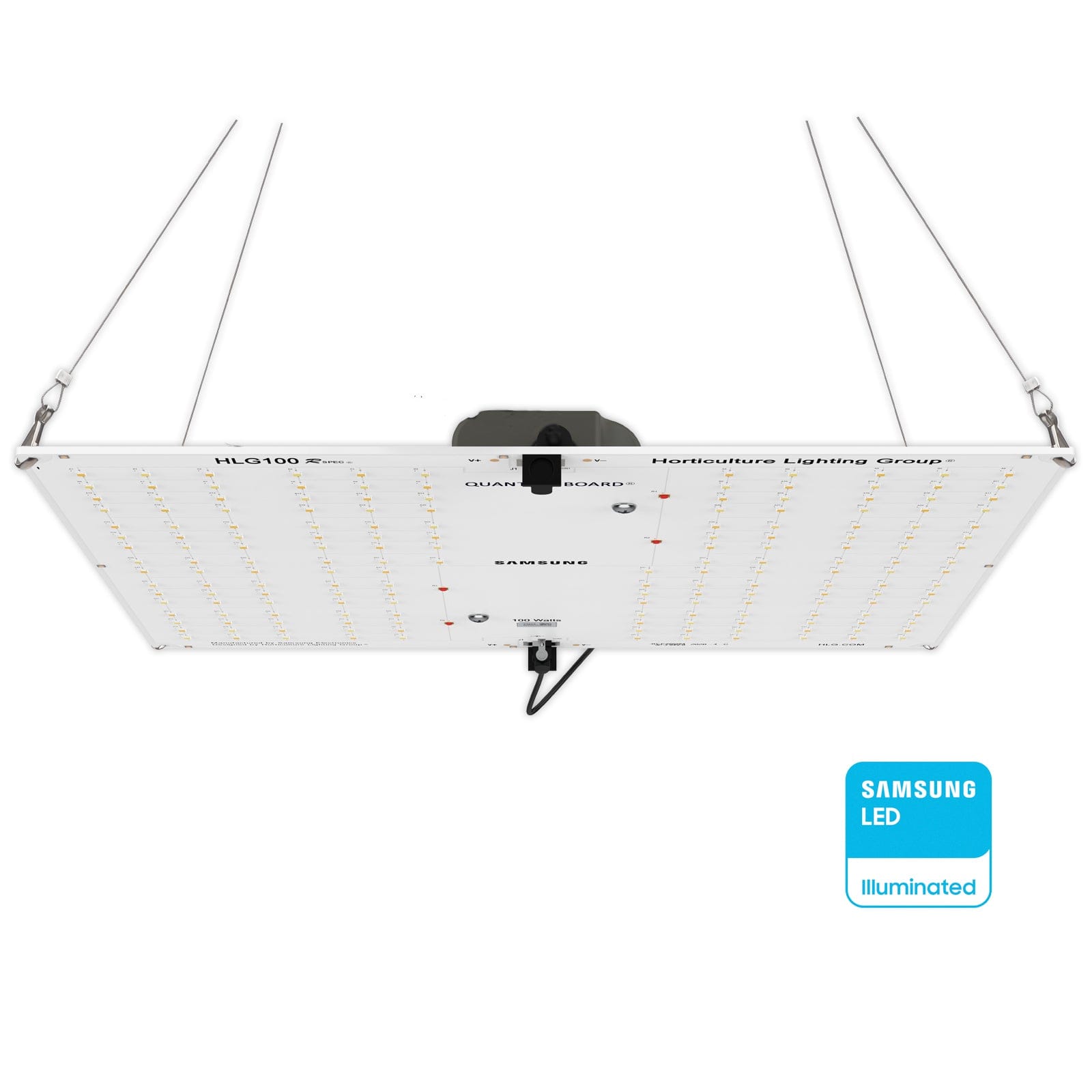 HLG 100 Rspec® uses high efficiency white light Quantum Boards® made by Samsung using the latest LM301H full spectrum and LM351H Deep Red LED's to help with flowering. This fixture produces 220 PPF, 14,000+ Lumens with just 95 Watts of power. Equivalent to 220W T5 or 300W CFL output or 200W metal halide.