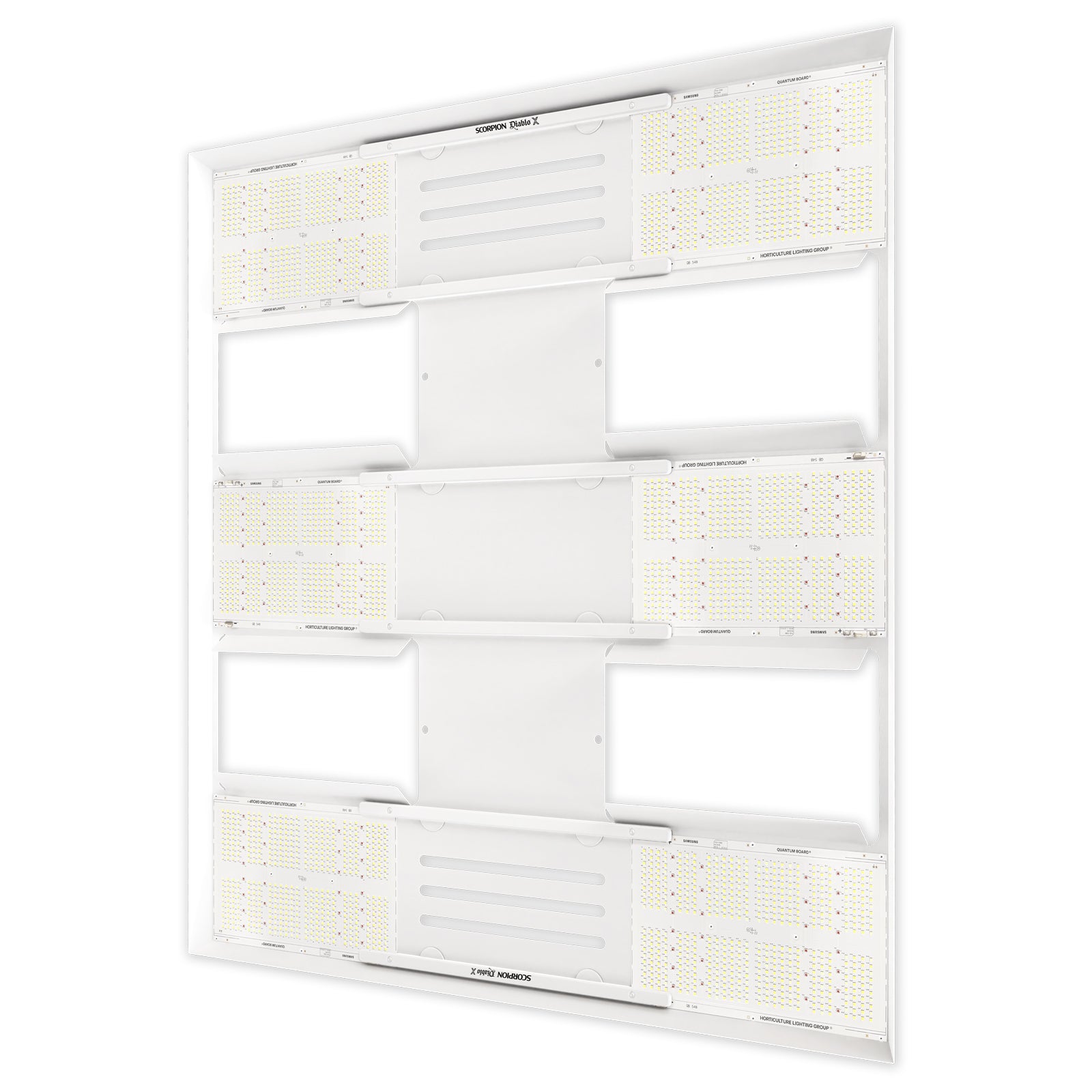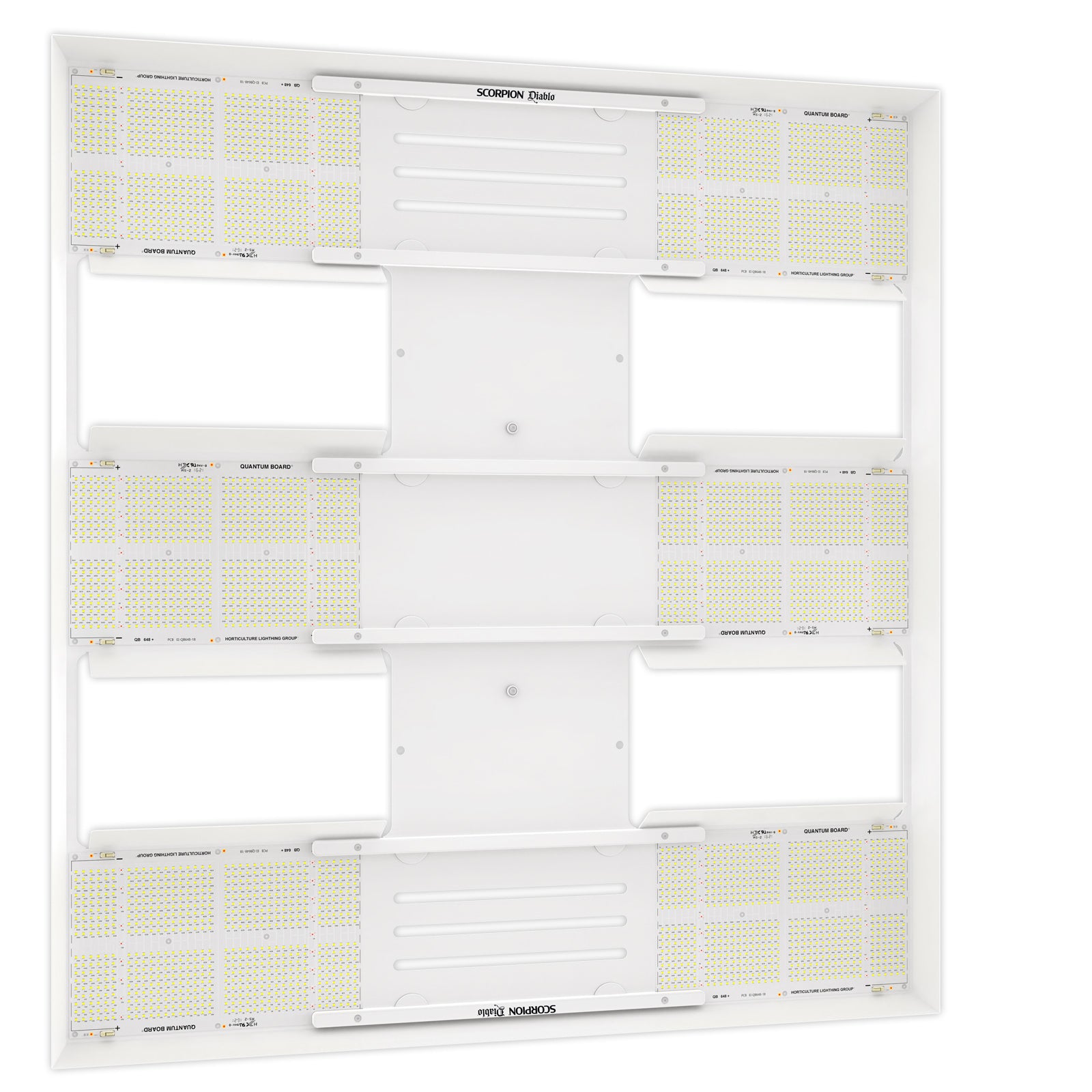 HLG Scorpion® Diablo™ X commercial lamps are designed for growers who want to maximize crop yields with a grow light that offers both high intensity and high efficiency. This lamp uses 6 advanced design Diablo Quantum Boards® for an even light spread making it perfect for tents, flood tables, rolling benches and vertical racks.