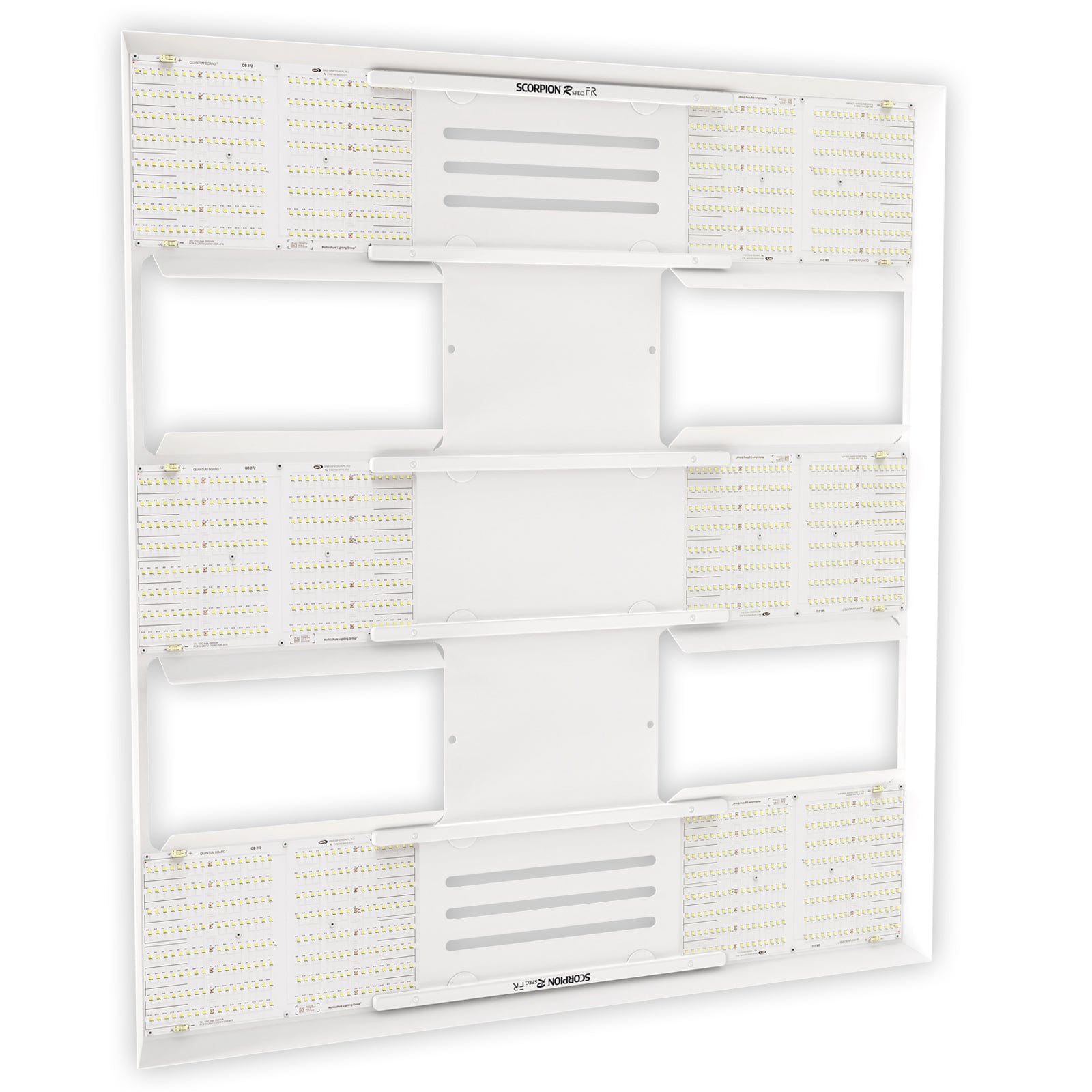 HLG Scorpion® Rspec® FR is designed for home and commercial growers looking for a cost-effective lamp with high performance. The dimmable design makes it ideal for a 5’x5’ coverage in grow tents, flood tables and rolling benches. This lamp is powered by six QB272 Quantum Boards® and includes 660nm deep red along with the 730nm far-red spectrum.